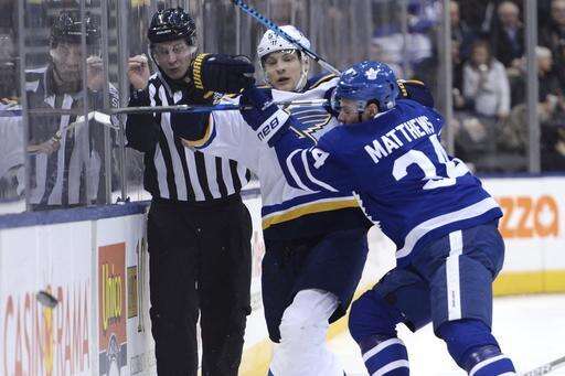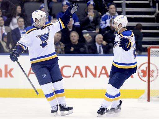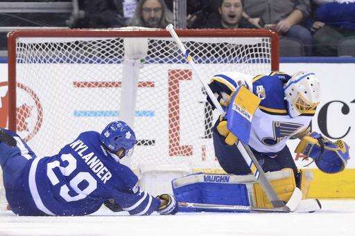 NOTES: Toronto had a scary moment early in the third when Mitch Marner, leading the Leafs and all NHL rookies in scoring, blocked Jay Bouwmeester's shot with his right hand. Marner winced in pain, but remained on for the remainder of his shift and the game. Marner nearly scored a few shifts later when he got some space in tight on Allen, the puck just bouncing over his stick as he attempted to get a shot off. ... The Leafs are in midst of a heavy home schedule, with six of the next eight at Air Canada Centre. ... St. Louis center Paul Stastny left in with a lower-body injury. He played one shift in the second period before departing.