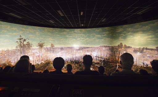 The painting's vivid scenes of charging soldiers, rearing horses, battle flags and broken bodies stretch the length of a football field when it is unfurled. Created by the American Panorama Co. in Milwaukee in the 1880s, the more than 15,000-square-foot painting is one of only two such panoramas on display in the nation. The other one is at Gettysburg National Military Park in Pennsylvania.