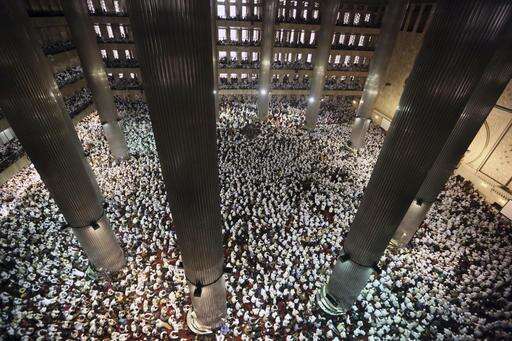 JAKARTA, Indonesia (AP) - Tens of thousands gathered at the national mosque in Jakarta for mass prayers on Saturday urging Indonesians to vote for Muslims in city and district elections being held across the country next week.