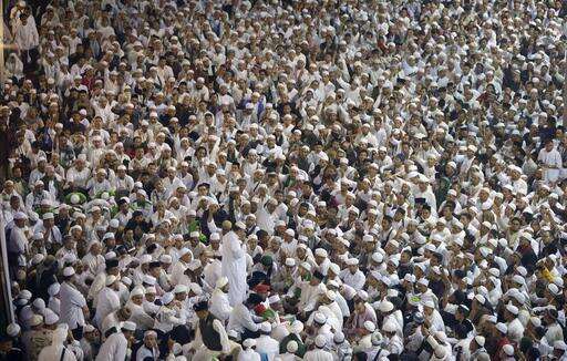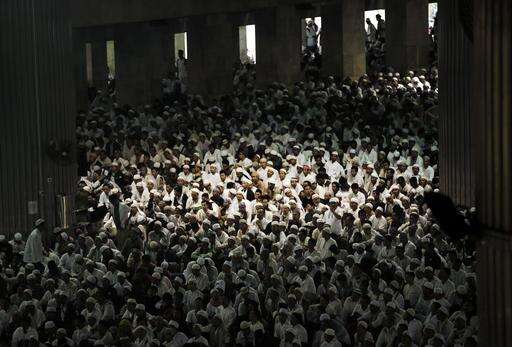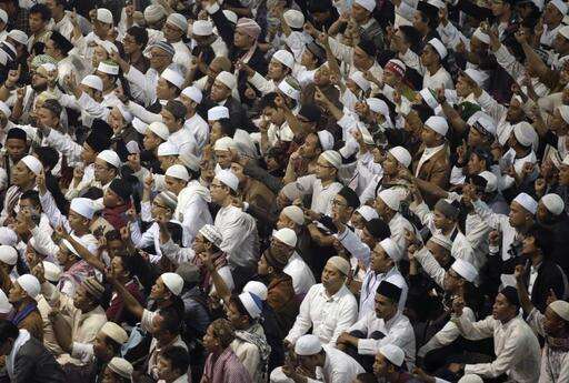 The crowds overflowed from Istiqlal Mosque in the heart of the capital into the surrounding streets. Clerics gave sermons calling on people to protect Islam and to vote for Muslim candidates.