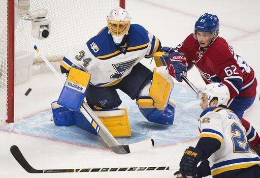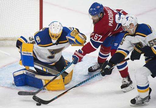 NOTES: Canadiens C Tomas Plekanec played his 900th NHL game. ... Blues C Paul Stastny sat out with a lower-body injury suffered Thursday in Toronto. ... Montreal RW Brendan Gallagher, out since Jan. 7 with a broken hand, is scheduled to return Sunday night in Boston. Carey Price is expected to start in goal for that game. ... A moment of silence was held before the game for former Detroit Red Wings owner Mike Ilitch, who died this week.