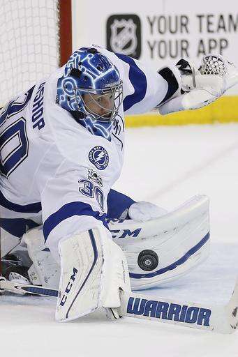 Ben Bishop made 32 saves in picking up his 14th win of the season for Tampa Bay.