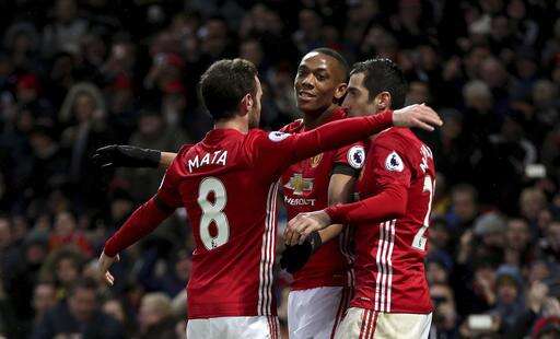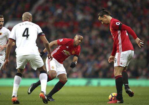 MANCHESTER, England (AP) - Anthony Martial scored one goal and set up the other in Manchester United's 2-0 win over Watford on Saturday that extended the team's unbeaten run in the Premier League to 16 games.