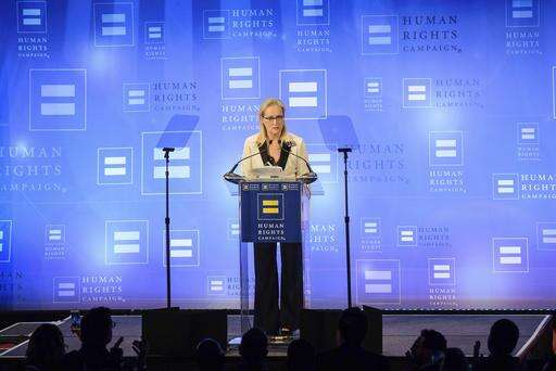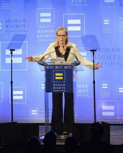 Streep was receiving the group's National Ally for Equality Award, and was the huge draw of the evening. Introduced by filmmaker Ken Burns, she took the stage to a thunderous ovation. After a humorous defense of her remarks in her Globes speech that football and martial arts weren't arts, which had drawn some criticism - she clarified that she indeed likes football, too - the actress praised the organization for defending LGBT rights, and spoke about two teachers - one transgender, one gay - who had influenced her childhood in suburban New Jersey.