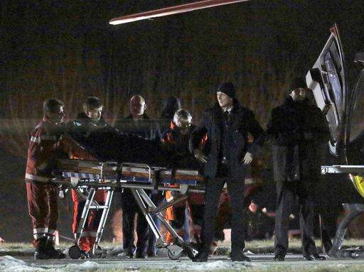 Polish Prime Minister Beata Szydlo is transported to a rescue helicopter after a car accident in Oswiecim, Poland, Friday, Feb. 10, 2017. Szydlo suffered minor injuries Friday after a small Fiat hit her car, officials and Polish news reports said. Her spokesman said she was being examined in a hospital but wasn't badly hurt. (AP Photo)
