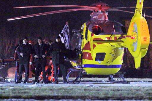 An Air Rescue helicopter lands at the Military Medical Institute with Polish Prime Minister Beata Szydlo in Warsaw, Poland, Saturday, Feb. 11, 2017, after she suffered injuries in a car crash in Oswiecim, her hometown in southern Poland, Friday evening. Szydlo was flown by helicopter to Warsaw for medical tests, even though doctors and her spokesman said that she was not badly hurt. (AP Photo/Czarek Sokolowski)