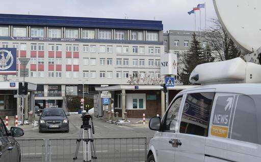 Media waits in front of the government hospital, the Military Medical Institute, in Warsaw, Poland, Saturday, Feb. 11, 2017., where Poland's Prime Minister Beata Szydlo is undergoing detailed medical tests after she was hurt, but not seriously, when her limousine was involved in a car crash and hit a tree in her southern hometown of Oswiecim on Friday night. (AP Photo/Czarek Sokolowski)