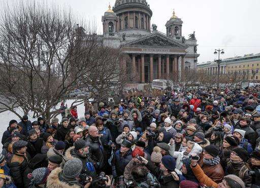 ST. PETERSBURG, Russia (AP) - Thousands of people in Russia's second-largest city held competing demonstrations Sunday for and against the return of the renowned St. Isaac's Cathedral to the Russian Orthodox Church.