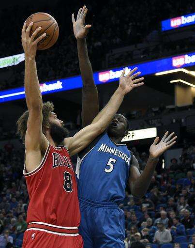 Bulls: Chicago hit 10 of 25 3-pointers, the first time in 16 games they have hit at least 10. ... Bobby Portis scored 16 points off the bench. ... Michael Carter-Williams (12) and Robin Lopez (10) were the only other Bulls starters in double figures. ... Coach Fred Hoiberg played for the Timberwolves and still owns a home in the Brainerd Lakes area.