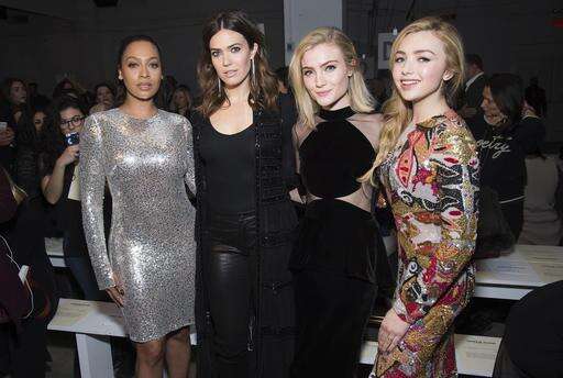 La La Anthony, from left, Mandy Moore, Skyler Samuels and Peyton List appear at the Naeem Khan show as part of NYFW Fall/Winter 2017 on Tuesday, Feb. 14, 2017 in New York. (Photo by Charles Sykes/Invision/AP) The Associated Press