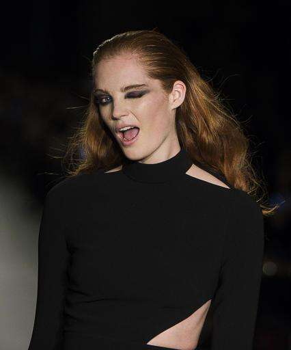 A model winks as she wears fashion from the Brandon Maxwell collection during Fashion Week, Tuesday Feb. 14, 2017, in New York. (AP Photo/Andres Kudacki) The Associated Press
