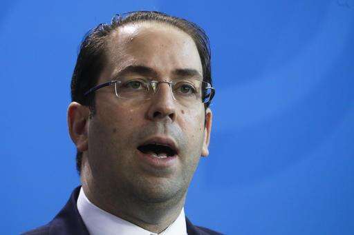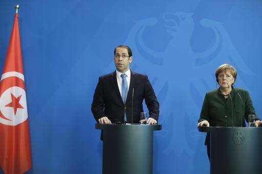 Tunisian Prime Minister Youssef Chahed attends a news conference with German Chancellor Angela Merkel after talks at the chancellery in Berlin, Tuesday, Feb. 14, 2017. (AP Photo/Markus Schreiber)