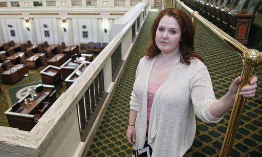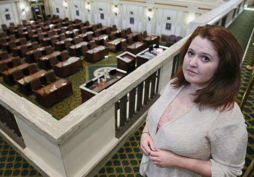 Carol Johnson poses for a photo in the House gallery in the Capitol in Oklahoma City, Thursday, Feb. 9, 2017. Johnson, who landed a position as a legislative assistant in the Oklahoma House of Representatives, has accused state Rep. Dan Kirby, of sexual harassment. Kirby, 58, resigned last week in the face of likely expulsion after Johnson testified before an investigating panel. (AP Photo/Sue Ogrocki) The Associated Press