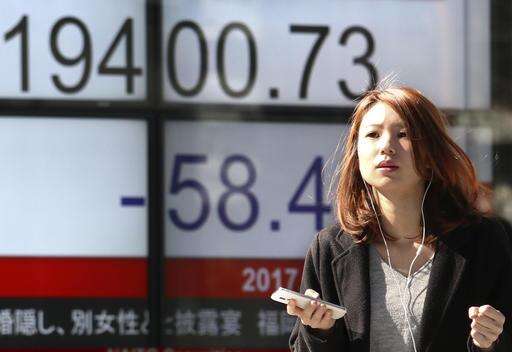 A woman looks at an electronic stock indicator of a securities firm in Tokyo, Tuesday, Feb. 14, 2017. Shares in Asia fell back after an early rally on Tuesday, as investors awaited comments to Congress by Federal Reserve chair Janet Yellen. (AP Photo/Shizuo Kambayashi)