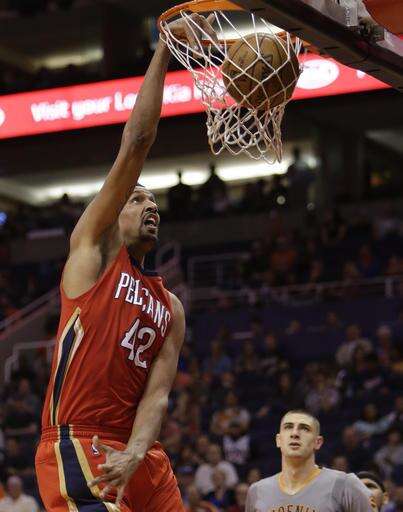 New Orleans Pelicans center Alexis Ajinca (42) dunks against the Phoenix Suns in the first quarter during an NBA basketball game, Monday, Feb. 13, 2017, in Phoenix. (AP Photo/Rick Scuteri) The Associated Press