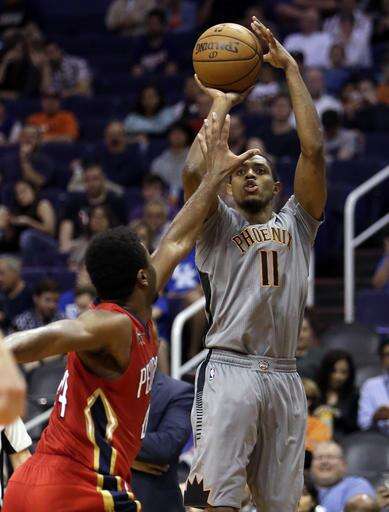 Suns: Bledsoe had his 12th 30-point game of the season, second against New Orleans. ... Bledsoe and Booker had four fouls apiece through three quarters. ... Tucker got a steal for the 17th consecutive game. ... Alex Len had 10 points and five rebounds in 7 1/2 minutes in the first half but was scoreless in 12 minutes during the second half. ... After averaging 19 points in the first three games of the season series, T.J. Warren was scoreless and took only three shots in 25 1/2 minutes.