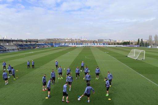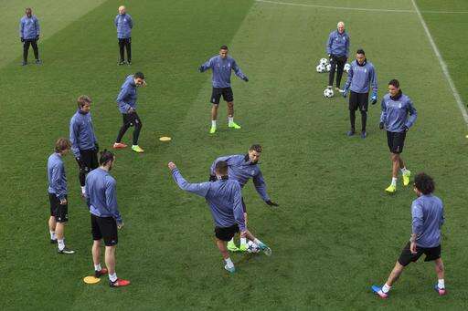 Real Madrid's players play with the ball during a training session at the Valdebebas stadium ahead of Wednesday's Champions League soccer match between Real Madrid and Napoli, in Madrid, Spain, Tuesday, Feb. 14, 2017 . (AP Photo/Daniel Ochoa de Olza) The Associated Press