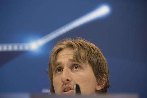 Real Madrid's player Luka Modric speaks during a press conference after a training session at the Valdebebas stadium ahead of Wednesday's Champions League soccer match between Real Madrid and Napoli, in Madrid, Spain, Tuesday, Feb. 14, 2017 . (AP Photo/Daniel Ochoa de Olza) The Associated Press