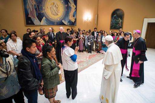 Francis met with representatives of indigenous peoples attending a U.N. agricultural meeting and said the key issue facing them is how to reconcile the right to economic development with protecting their cultures and territories.