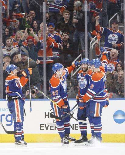 Edmonton made it 3-2 on a two-man advantage midway through the second as Connor McDavid moved back into the NHL scoring lead, setting up a one-timer by Letestu.