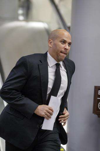 Sen. Cory Booker, D-N.J. rushes down an escalator on Capitol Hill in Washington, Friday, Feb. 17, 2017, after the final vote to confirm Scott Pruitt to lead the Environmental Protection Agency. (AP Photo/J. Scott Applewhite) The Associated Press