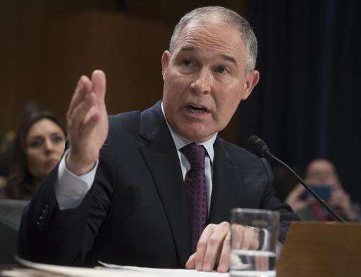 FILE - In this Jan. 18, 2017, file photo,Environmental Protection Agency Administrator nominee, Oklahoma Attorney General Scott Pruitt testifies on Capitol Hill in Washington at his confirmation hearing before the Senate Environment and Public Works Committee. Senate Republicans are poised to use their majority to confirm Pruitt to lead the Environmental Protection Agency, despite calls from Democrats for a delay.(AP Photo/J. Scott Applewhite, File) The Associated Press