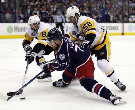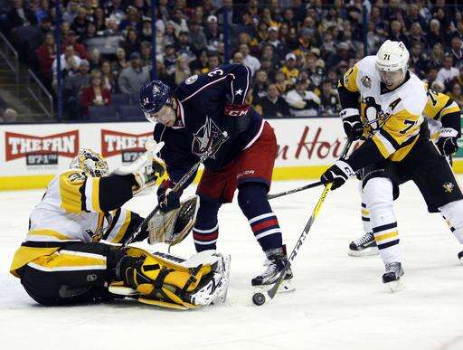 NOTES: The crowd of 19,188 was the second-largest ever for a Blue Jackets regular-season game. ... Columbus C Lukas Sedlak left with an injury in the second period and didn't return. ... Columbus F Oliver Bjorkstrand had a goal nullified on a delayed penalty in the second period. ... Before the game, Pittsburgh called up D Cameron Gaunce and D Steve Oleksy from Wilkes-Barre/Scranton of the American Hockey League to replace the injured Olli Maatta and Justin Schultz. ... The Blue Jackets played their second of three straight games against opponents playing the second game of a back-to-back. ... Columbus F Scott Hartnell missed his second game with a lower-body injury suffered in a hard collision with the board Monday night. ... Pittsburgh F Carl Hagelin returned after missing five games with a concussion.