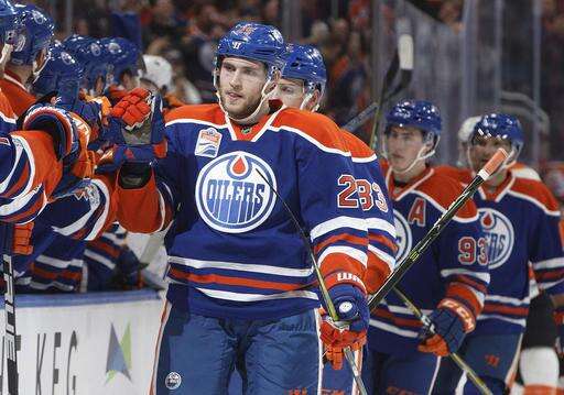 Matt Hendricks, Leon Draisaitl, Jordan Eberle, Ryan Nugent-Hopkins and Oscar Klefbom also scored for the Oilers, who have won two straight and three of four. Edmonton moved into a tie with Anaheim for second place in the Pacific Division with 70 points.