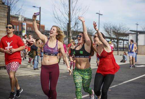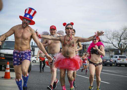 Joggers wearing in boxers, briefs, bras, bloomers and other underwear take off at the start of Cupid's Undie Run for charity in Philadelphia on Saturday, Feb. 18. 2017. (AP Photo/Dino Hazel) The Associated Press