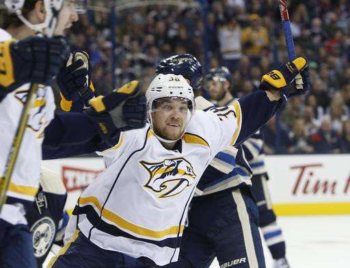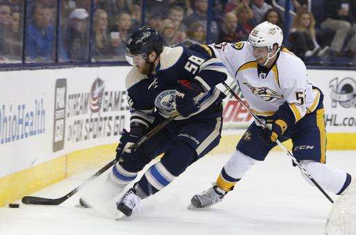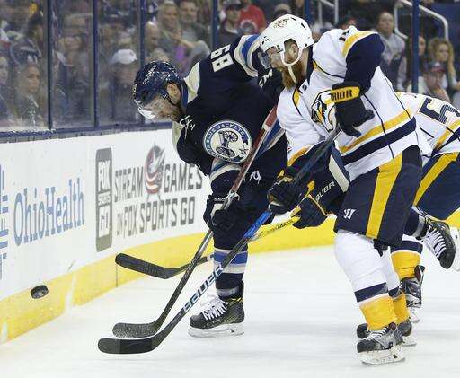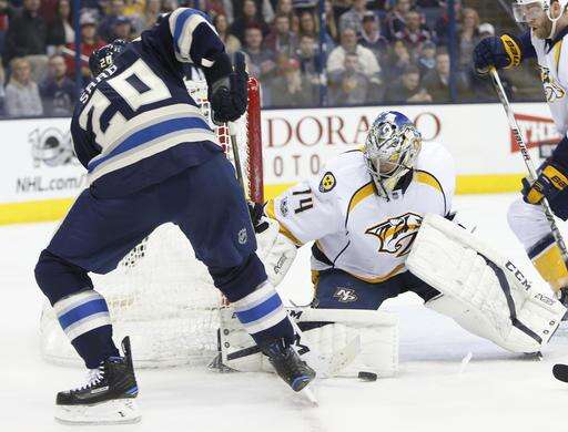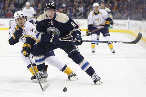 NOTES: Columbus forward Scott Hartnell returned after missing two games with a lower-body injury sustained when he crashed into the boards on Monday. ... Fiala was recalled from Milwaukee of the American Hockey League on Saturday. ... Werenski had a career-high three points. He had three goals and seven assists in the past 13 games. ... Predators C Ryan Johansen played at Columbus for the first time since being traded for Jones in January 2016. ... Columbus rookie C Lukas Sedlak was out with an injury sustained Friday against Pittsburgh.