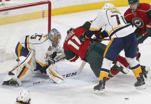 NOTES: Wild RW Nino Niederreiter established a career high with his 24th assist. ... Minnesota activated D Jonas Brodin off injured reserve. He missed 14 games with a broken finger. ... Nashville recalled LW Kevin Fiala from Milwaukee of the AHL. He did not play. .. The Predators began a stretch of 26 games in 50 days to finish the regular season.