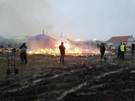 Dakota Access pipeline protesters are ceremonially burning some of their living structures ahead of the closure of a longstanding camp in North Dakota.