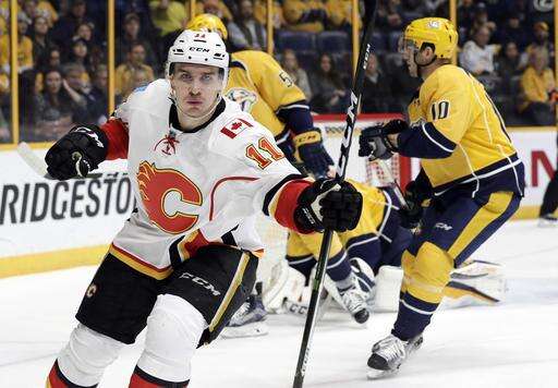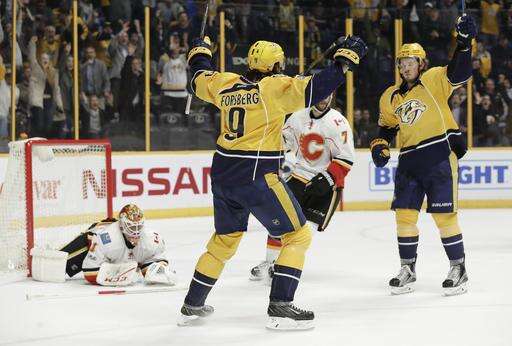NOTES: Forsberg has three career hat tricks - the last two coming in the second period. ... Nine of the last 10 games between these teams have been decided by one goal, and five have gone past regulation with Calgary winning all five. ... Nashville has outscored opponents by an NHL-high 27 (73-46) in the second period. ... The Predators now are 20-0-5 when leading after two periods. ... Defenseman Michael Stone, acquired in a trade from Arizona on Monday, debuted with the Flames paired with Matt Bartkowski.