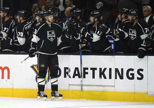 Los Angeles Kings defenseman Kevin Gravel is congratulated by teammates after scoring during the first period of the Kings' NHL hockey game against the Boston Bruins, Thursday, Feb. 23, 2017, in Los Angeles. (AP Photo/Mark J. Terrill) The Associated Press
