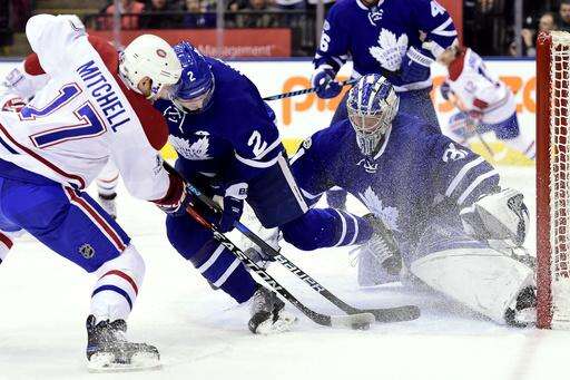 NOTES: The Maple Leafs played without Mitch Marner and Tyler Bozak. Marner missed his fifth straight game with an apparent right shoulder injury. ... Matthews needs five goals to break Clark's rookie franchise record of 34. ... The Canadiens entered with only 13 goals in their previous 10 games.