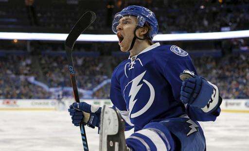 Tampa Bay Lightning's Brayden Point celebrates his goal during the second period of an NHL hockey game against the Ottawa Senators on Monday, Feb. 27, 2017, in Tampa, Fla. (AP Photo/Mike Carlson) The Associated Press