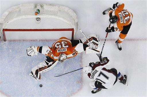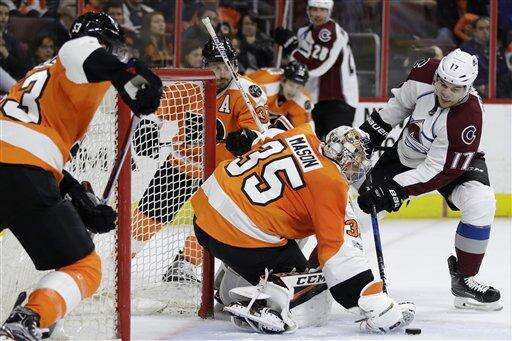 PHILADELPHIA (AP) - Wayne Simmonds scored a pair of first-period goals, Steve Mason made 33 saves and the Philadelphia Flyers snapped out of an offensive funk with a 4-0 victory over the Colorado Avalanche on Tuesday night.