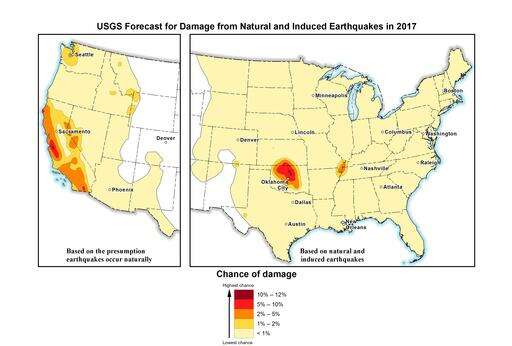 Federal 2017 quake forecast highlights Oklahoma, California