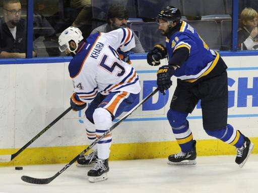 Oilers end road trip with 2-1 win over Blues