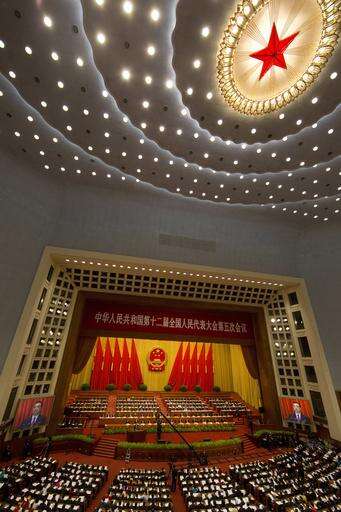 Chinese Premier Li Keqiang delivers a work report at the opening session of the annual National People's Congress at Beijing's Great Hall of the People, Sunday, March 5, 2017.China's top leadership as well as thousands of delegates from around the country are gathered at the Chinese capital for the annual legislature meetings. (AP Photo/Ng Han Guan) The Associated Press