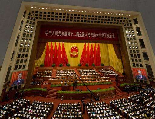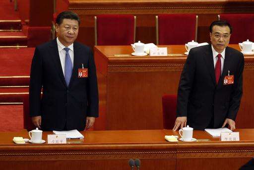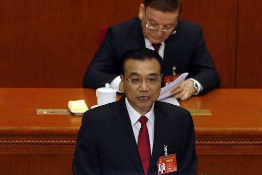 Chinese Premier Li Keqiang delivers a work report at the opening session of the annual National People's Congress at Beijing's Great Hall of the People, Sunday, March 5, 2017. China's top leadership as well as thousands of delegates from around the country are gathered at the Chinese capital for the annual legislature meetings. (AP Photo/Ng Han Guan) The Associated Press