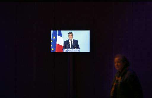 PARIS (AP) - French presidential candidate Francois Fillon, fighting for political survival, called on supporters Saturday not to "abdicate" to those trying to destroy him as the Socialist mayor of Paris asked him to cancel a scheduled rally that would test his staying power.
