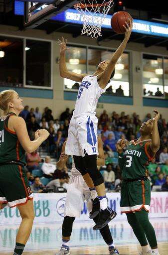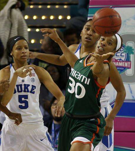 Miami: The Hurricanes were trying to reach the ACC Tournament final for the first time in school history. Miami last was in a conference tournament final when they won back-to-back championships in the Big East in 1992 and 1993. ... Meier starred at Duke as a player from 1986-90. She is fifth on the school's all-time scoring list with 1,761 points and was the ACC rookie of the year in 1986. The Canes also have other Duke connections as assistant coaches