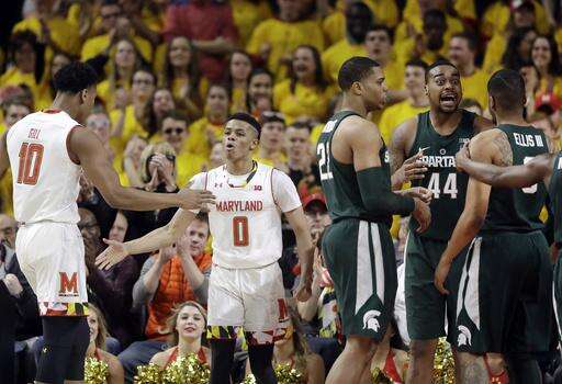 Maryland led 55-51 before Ward scored the Spartans' next nine points to tie the game at 60. The 6-foot-8 forward started his personal run with two free throws, and after Jackson hit a 3-pointer to make it 58-53, Ward scored in the lane and added a three-point play.