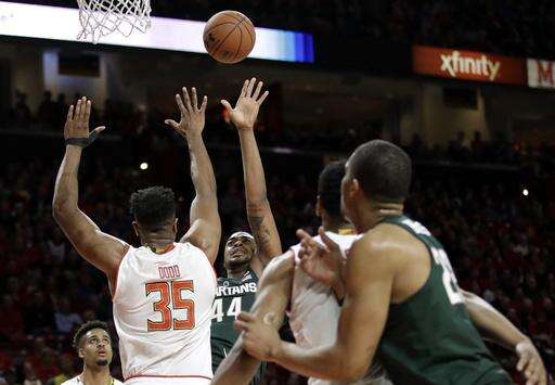 Nick Ward had 22 points and 16 rebounds for Michigan State (18-13, 10-8). But his turnover in the final seconds served as a prelude to Trimble's game-winning shot.