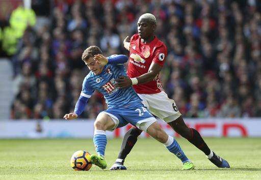 Earlier, Marcos Rojo's first Premier League goal, in the 23rd minute, was canceled out by former United player Josh King's penalty in the 40th after Phil Jones fouled Marc Pugh. That was Bournemouth's only shot on target.