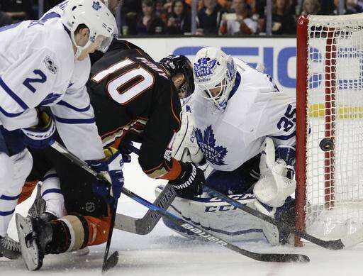 NOTES: Ducks G John Gibson missed his third consecutive game with a lower-body injury. ... Anaheim is 1 for 33 on the power play in its last 11 games. ... Toronto's league-best power play has now scored 25 goals on the road with the man advantage.