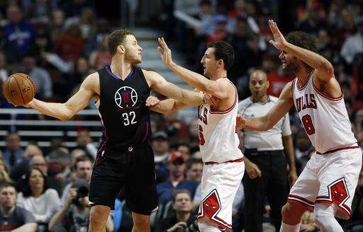 Chicago led by 10 points five times in the second quarter, but the Clippers took control late in the third. Crawford's long 3-pointer at the buzzer closed an 18-5 Los Angeles run at the end of the period to go up 82-73.