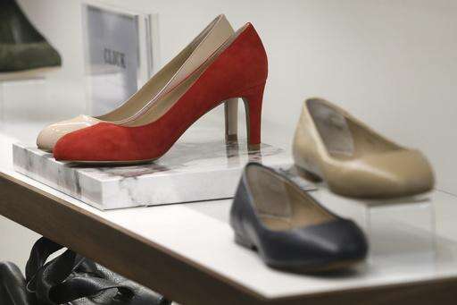 High heels are on display in a store in London, Monday March 6, 2017. British lawmakers are due to debate banning mandatory high heels in the workplace on Monday, in response to a petition started by a receptionist who was sent home for wearing flat shoes. The debate is non-binding, but a committee of lawmakers has found that "discriminatory dress codes" are commonplace and called for urgent action. (AP Photo/Tim Ireland)