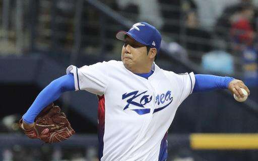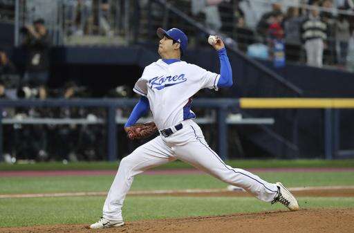 South Korea's starting pitcher Chang Won-jun throws against Israel during the third inning of their first round game of the World Baseball Classic at Gocheok Sky Dome in Seoul, South Korea, Monday, March 6, 2017. (AP Photo/Lee Jin-man)